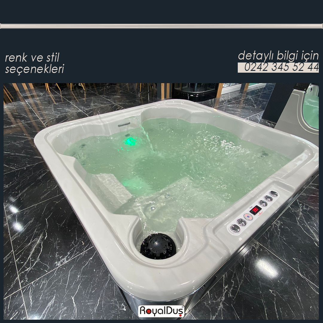 Türkiye’nin en büyük jakuzi üreticilerinden Royal Duş A.Ş., doğrudan üretici firma olması sayesinde 200×200 cm boyutundaki spa jakuzilerini yüksek kalite standartlarında üretmektedir. Kullanılan dayanıklı akrilik yüzeyler, güçlü motor sistemleri, sessiz çalışan jetler ve uzun ömürlü filtre teknolojileri ile Royal Duş A.Ş. jakuzileri, hem bireysel kullanıcılar hem de otel ve spa işletmeleri için güvenilir çözümler sunar.